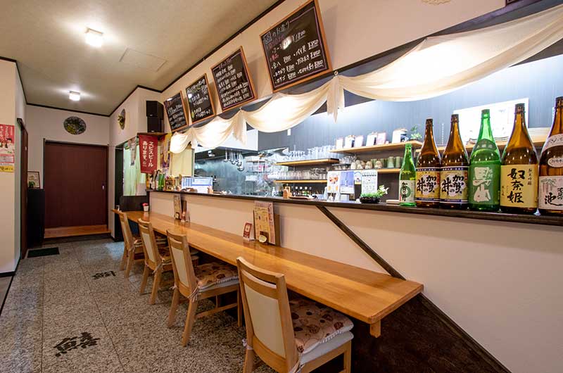 店内は最大38席。カウンタ―が4席で、他はテーブル席と小上がり座敷となります。各席のスペースを広めにとっておりますので、通常のテーブル席でもプライベートな雰囲気でお過ごしいただけます。広々としたカウンタ―は、お一人飲みにも最適!ご来店をお待ちしております。